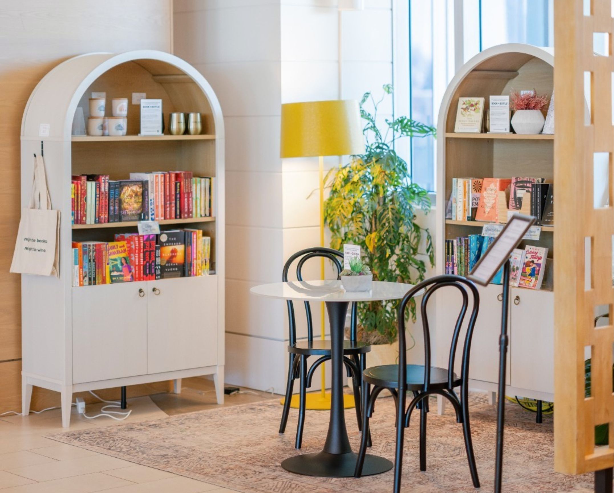 Book + Bottle is a cozy, hybrid café, wine bar, and bookstore known for pairing great drinks with a curated selection of books in a relaxed, intimate setting.