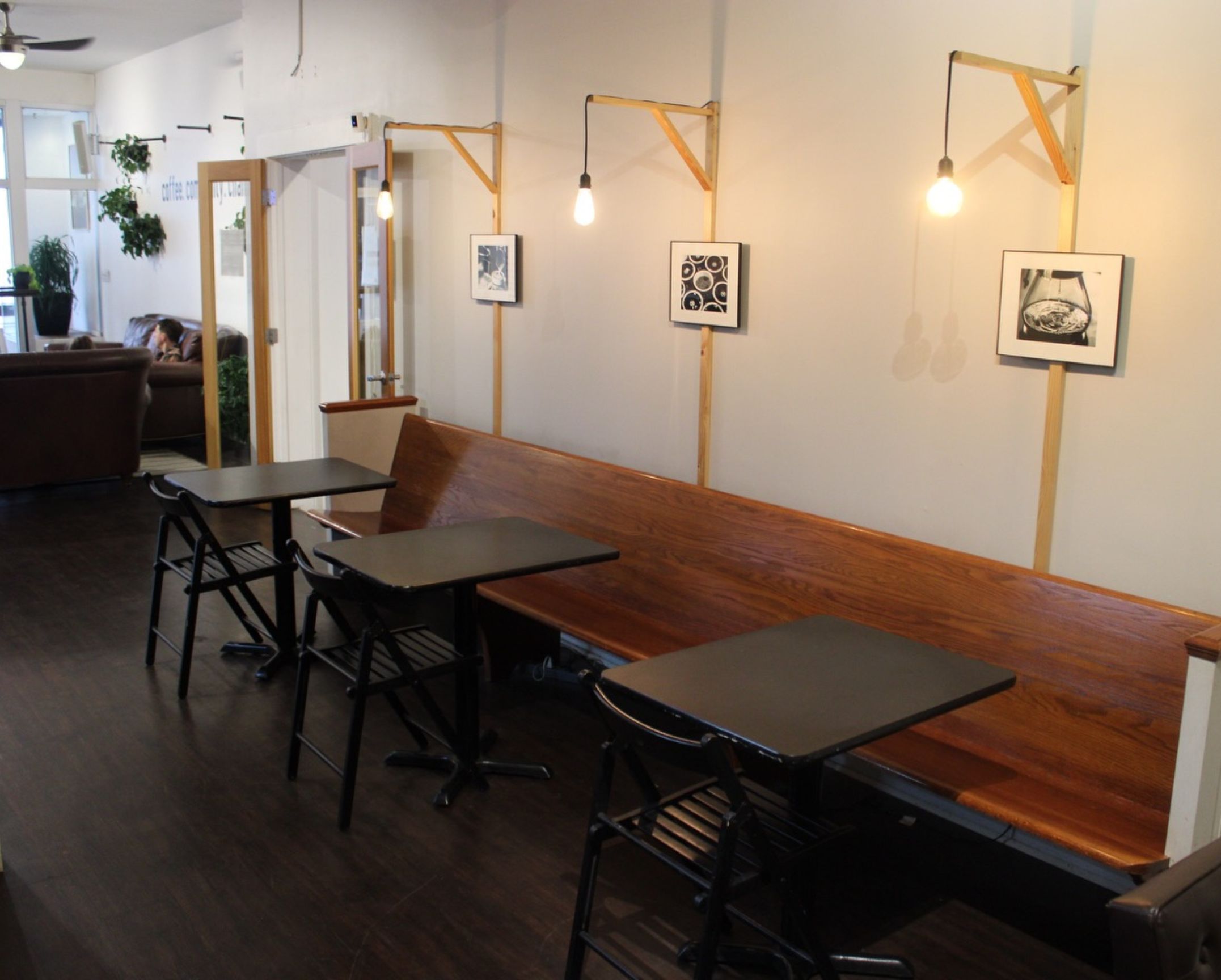 A calm, cozy coffee shop with soft lighting and plenty of seating, popular for studying, working, or settling in for a quiet morning.