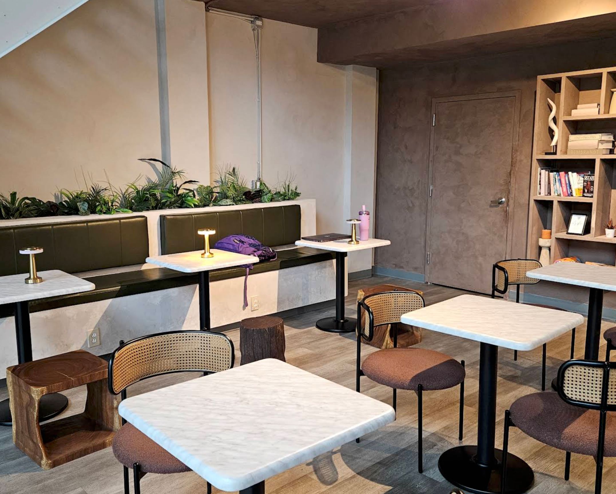 A warm, inviting space with soft lighting, cozy seating, and a peaceful, slow-down atmosphere perfect for reading, working, or unplugging for a bit.